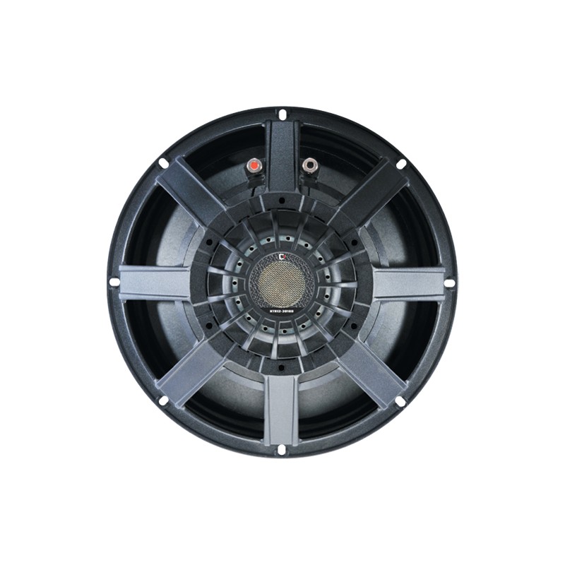 Altavoz de graves de 12" con imán de neodimio que provee 350Wrms de potencia (AES Estándar) y 98 dB de Sensibilidad