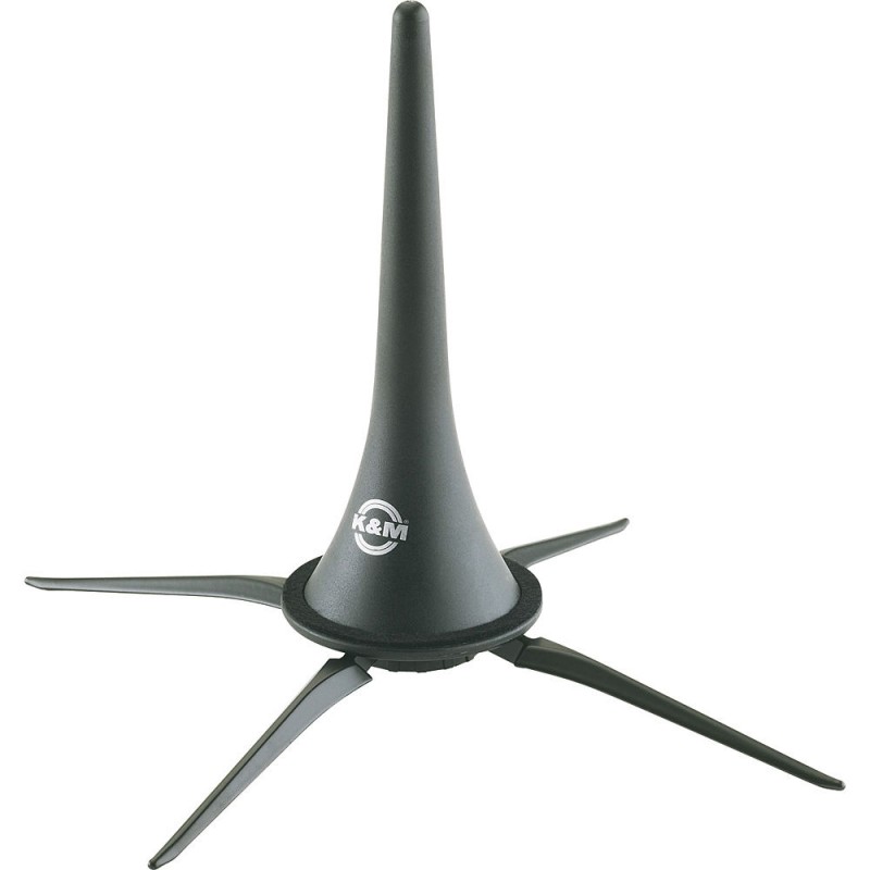 Soporte de clarinete único y compacto con clavija de plástico negro que se adapta a los clarinetes A y B. La base de 4 patas proporciona la máxima estabilidad para el instrumento. La base de pata de metal desmontable se atornilla en la clavija para que toda la unidad se pueda guardar en la campana del instrumento.