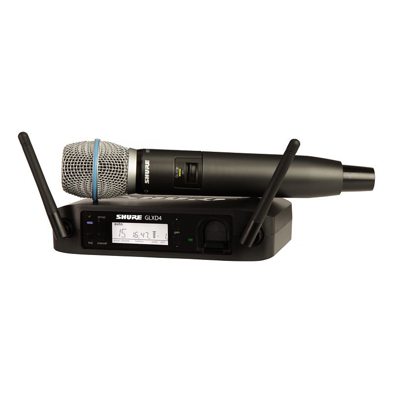 Sistema de microfonia inalambrico GLXD24/B87AEl sistema inalámbrico de mano GLXD24 / B87A es parte de la familia de sistemas inalámbricos GLX-D.Los revolucionarios sistemas inalámbricos digitales Shure GLX-D® combinan la avanzada tecnología LINKFREQ Automatic Frequency Management con la mejor capacidad de recarga inteligente de la batería de iones de litio para definir el nuevo estándar para un funcionamiento sin problemas y claridad de audio digital.Incluye el receptor GLXD4, el transmisor de mano GLX2 / BETA87A, el clip para micrófono, la fuente de alimentación, la batería recargable, el cable USB, el estuche y la guía del usuario.