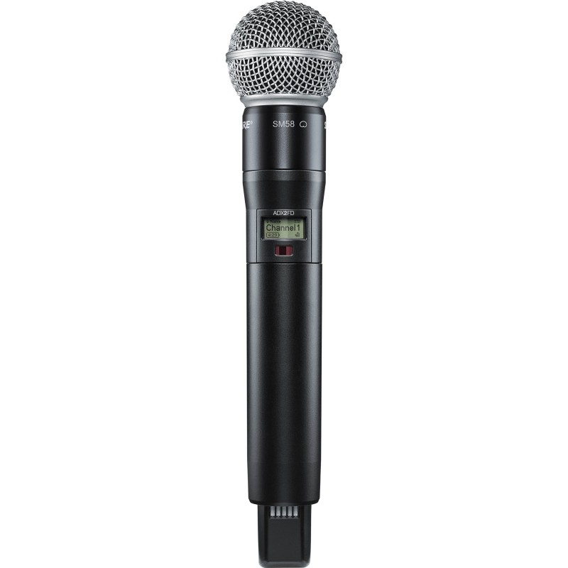 Transmisor de mano Axient Digital, Diversity, SM58 ADX2FD / SM58, como todos los transmisores ADX, prepara el escenario para un rendimiento excepcional, con una amplia sintonía de hasta 184 MHz, protección contra interferencias, recarga avanzada, diseño optimizado y control remoto ShowLink para ajustes de parámetros en tiempo real desde la cabina. CARACTERÍSTICAS PRINCIPALES Capacidad para transmitir señal de RF en dos portadores discretos Modo opcional de alta potencia de 50 mW para aumentar la potencia en una sola frecuencia Carcasa de metal duradera, resistente a la humedad y ligera en acabado negro Hasta 6.5 horas de tiempo de ejecución con la batería recargable SB920 cuando se transmite en dos portadoras de RF (hasta 9 horas de duración de la batería cuando se transmite en una sola portadora de RF) Contactos externos para carga acoplada con radomo totalmente cubierto opcional ShowLink de diversidad habilitado para el control remoto del transmisor y la evitación automática de interferencias Dos modos de transmisión: estándar para una cobertura óptima y nueva alta densidad para un recuento máximo de canales del sistema y una cobertura sólida Transmisión segura con cifrado habilitado