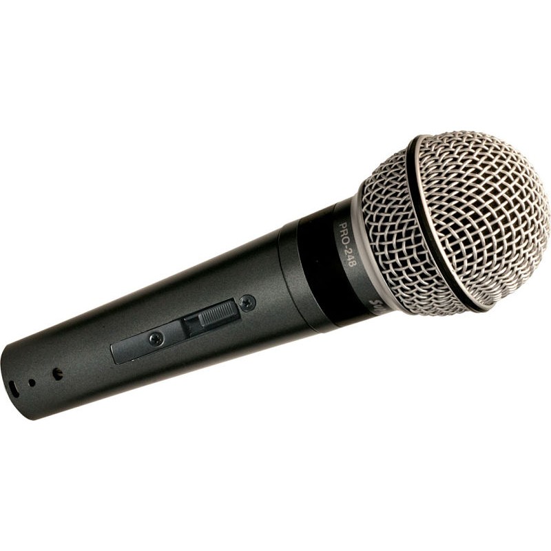Superlux PRO-248La serie PRO-248 de micrófonos de estudio dinámico supercardioide son ejecutantes asequibles y confiables para refuerzo de sonido profesional y en estudios de grabación. Estos micrófonos utilizan una alta calidad de neodimio-imán y de doble membrana de cúpula de diafragma, lo que resulta en una alta sensibilidad y respuesta de frecuencia extendida. Estos micrófonos duraderos vienen con un soporte de micrófono estándar, a 5/8 "a 3/8" x 16 adaptador T y una robusta caja de plástico.Características Superlux PRO-248Alta sensibilidad y respuesta de frecuencia extendida lisaPatrón supercardioide Tight ofrece una excelente ganancia antes de retroalimentaciónPRO-248S cuenta con un bloqueo de encendido / apagadoSuperlux PRO-248 EspecificacionesCápsula: DinámicoElemento: cápsula de imán de neodimio, salida del transformadorPatrón polar: supercardioideRespuesta de frecuencia: 50 ~ 16.000 HzSensibilidad [dBV / pa]: -55 (1.8mv/pa)Impedancia nominal: 300ΩDimensiones: Φ2 1/16 "x 6 1/2"Peso: 9,6 oz