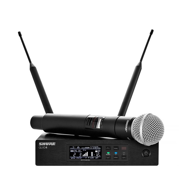QLXD4Receptor inalámbrico digitalEl receptor inalámbrico digital QLXD4 de medio rack encuentra rápidamente las frecuencias abiertas y las despliega en los transmisores a través de la función de sincronización de un toque.QLXD2 / SM58Transmisor inalámbrico de manoCon un cartucho de micrófono SM58® intercambiable, el transmisor de micrófono inalámbrico portátil QLXD2 / SM58 es ideal para voces inalámbricas en espacios de presentación, lugares de música y lugares de culto.
