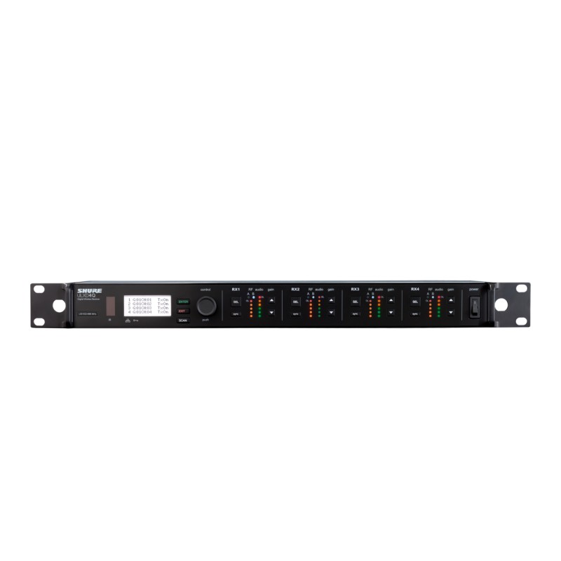 Receptor Inalámbrico Digital ULXD4QReceptor inalámbrico digital cuádruple, RF en cascada, salidas de audio configurables.Receptor inalámbrico digital de cuatro canales de audio de primera calidad, alta estabilidad y eficiencia de la señal de RF en una unidad de rack.Cuatro canales de audio de calidad sin concesiones, estabilidad de la señal de RF y características avanzadas de configuración en una unidad de rack. El receptor inalámbrico de cuatro canales ULXD4Q de Shure ofrece cuatro canales de audio sin comprometer la calidad, alta estabilidad y eficiencia de la señal de RF y características de configuración en una única unidad de rack.Con el conjunto de características y beneficios que el sistema inalámbrico digital, ULX-D® ofrece, el ULXD4DQ está disponible en todas partes como cualquier otro receptor digital cuádruple en su clase, y trae un nuevo nivel de rendimiento para el refuerzo de sonido profesional.Nota: Al comprar componentes inalámbricos por separado, por favor empareje sus bandas de frecuencia para asegurar el funcionamiento adecuado del sistema.
