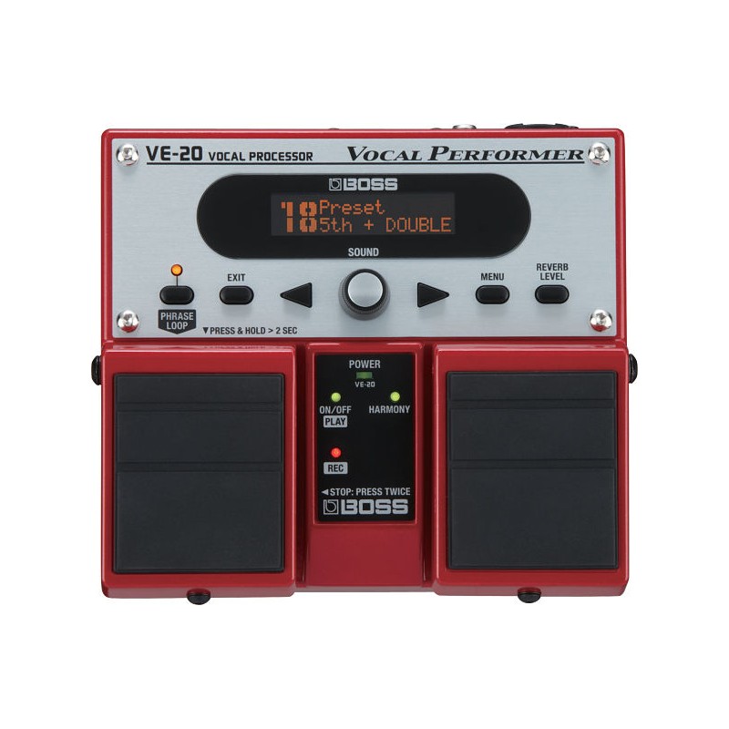 Por que decir que los pedales son solo para guitarristas? El nuevo VE-20 es fácil de usar y ha sido diseñado desde la raíz para los cantantes, presentando la tecnología de algunos de los mejores efectos de voz del mercado. Al pisar el pedal de cambio, puedes añadir al instante exuberantes capas de voz y armonías a tu canto, agregar corrección de tono en tiempo real, etc., demuestra tu lado creativo con efectos especiales, tales como: Distorsión, Radio y Strobe. Puedes incluso crear bucles y capas en tiempo real con el Phrase Looper integrado. Lleva tu interpretación a todo lugar con él VE-20 ya que funciona con Corriente Alterna y/o con pilas.