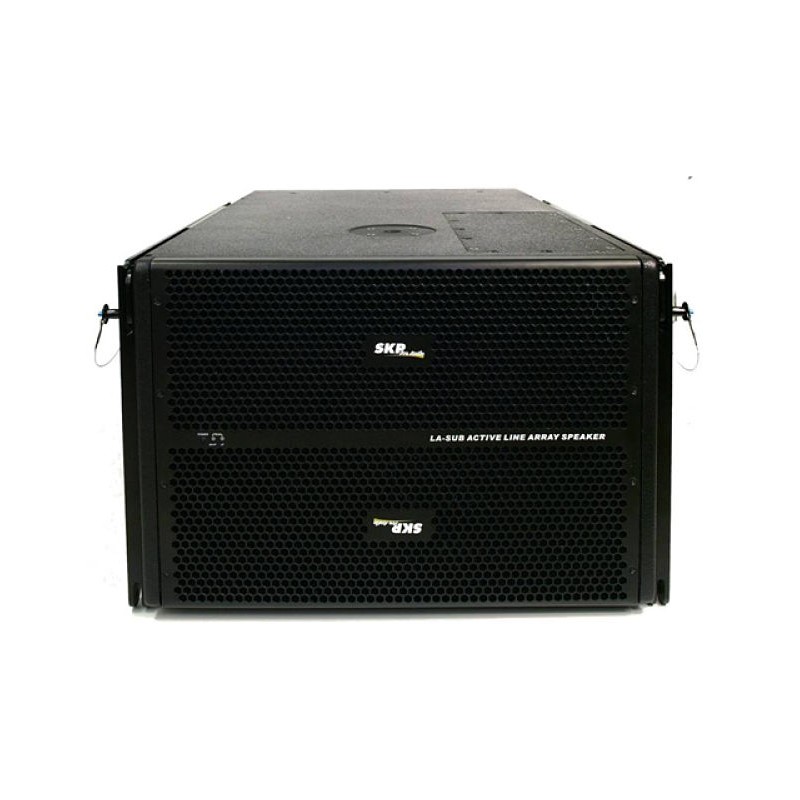 Bafle Subwoofer Amplificado SKP LA SUB 2 bocinas de 12"Potencia de sistema lineal con opcion para colgarseEspecificaciones:° Subwoofer activo° Unidad LF: 2 x 12 "(dia 99,97mm) SUB° Respuesta de frecuencia: 30Hz - 250Hz (± 3dB)° Sensibilidad: 101dB (Eje 1w / 1m - Rango Completo)° Impedancia: 4 ohmios x 2° Potencia continua: 350W x 2° Máx. Potencia: 700W x 2° Energía del amplificador: 1400w (700w + 350w + 350w)° Sensibilidad de entrada: 0,775V° Conectores: 1xXLR a través de 1xXLR° HP Flex Frecuencia: 80 a 200Hz (-3dB)° LP Frecuencia Flexible: 50 a 250Hz (-3dB)° Material: Contrachapado de abedul polo° Protección exterior: Acabado negro ambiental de la laca° Protección del Panel Frontal: Harden spray finish round perforation steel grille° Ángulo de Suspensión: 0º° Suspensión: Sistema de aparejo° Dimensiones (W * D * H): 21 9/16 "* 33 9/16" * 15 7/8 "(548 * 852 * 404 mm)° Peso Neto: 154,8lb (70,2kg)° Peso bruto: 212,7lb (96,5kg)