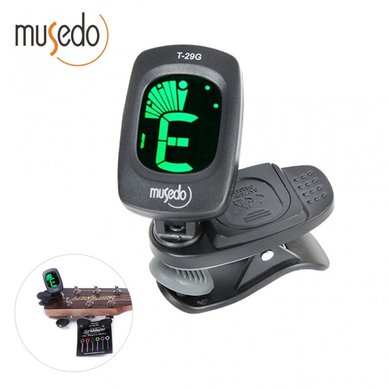 Musedo on Afinador de Guitarra Musedo T 29G Clip on Afinador de Guitarra con Auto Potencia Encendido / Apagado y Sin Interruptor Profesion Exquisito Portatil NegroAfinacion Indicador de precision: Bajo: La pantalla muestra roja; Alto: La pantalla de la derecha muestra roja; En sintonia:La pantalla en el medio muestra verde.Girando articulos: GuitarraRango de sintonizacion: A0 (27.5 Hz) - C8 (4186.0 Hz) Potencia: 1 * CR2032 bateria Tamano de la pantalla: 2,5 cm * 2/1 * 0.8pulgadas Nota:Retire la bateria si no se utiliza durante un largo periodo. Si el sintonizador mantiene en el cabezal de la guitarra, se apagara automaticamente en 5 minutos sin importar que este en uso o no. Lista de Paquete: 1 * Sintonizador electricoNota: Los disparos de luz y diferente pantalla pueden hacer que el color del elemento de la imagen un poco diferente de lo real objeto. El error de medicion permitido es +/- 1-3 cm.