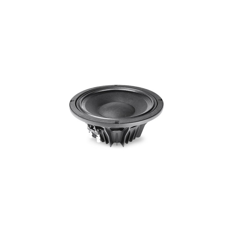 ESPECIFICACIONES NOMINALESDiámetro nominal250 mm (10 in)Diámetro total261 mm (10.28 in)Diámetro de fijación tornillos246 mm (9.69 in)Diámetro de corte en el Deflector232 mm (9.13 in)Profundidad115.3 mm (4.54 in)Espesor Canasta y Junta12.2 mm (0.48 in)Peso neto2.3 Kg (5.1 lb)Caja de envío(Caja individual de cartón)294 x 290 x 203 mm(11.6 x 11.4 x 8.0 in)Peso envío2.8 Kg (6.16 lb)PARÁMETROS TÉCNICOSImpedancia nominal8 OhmImpedancia mínima6.4 OhmSoporte potencia AES (1)300 WSoporte máximo de potencia (2)600 WSensibilidad (1W/1m)98 dBRango de frecuencia60÷5000 HzDiámetro Bobina65 mm (2.5 in)Material del bobinadoAlMaterial del soporteFibra de vidrioAltura del bobinado12.5 mm (0.49 in)Altura del campo magnético8 mm (0.31 in)Densidad de flujo magnético1.25 TImánDisco de NeodimioMaterial CanastaAluminioDemodulaciónNoSuspensión del Diafragma (3)M-OndaVolumen neto del aire ocupado por el altavoz1.3 dm^3 (0.046 ft^3)Perfil del Centrador1x ondas de altura variable PARÁMETROS THIELE Y SMALLFs60 HzRe5.4 OhmQes0.29Qms5.8Qts0.27Vas36.7 dm^3 (1.30 ft^3)Sd322 cm^2 (49.91 in^2)Xmax (4)4.92 mmXdamage (5)14 mmMms28.2 gBl14.1 N/ALe0.6 mHMmd24.9 gCms0.25 mm/NRms1.83 Kg/sEta Zero2.67 %EBP207 Hz