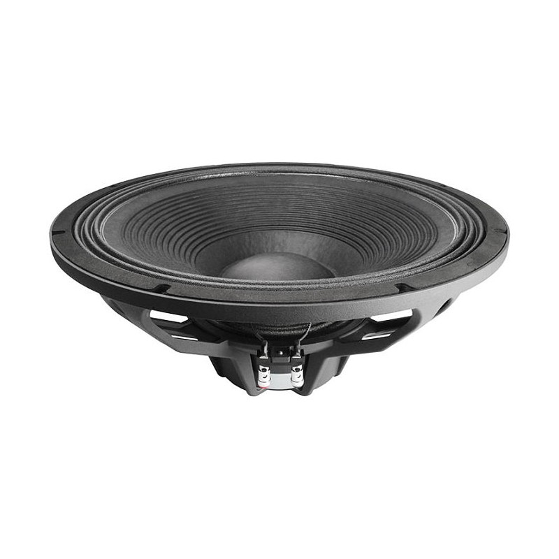 ESPECIFICACIONES NOMINALESDiámetro nominal460 mm (18 in)Diámetro total460 mm (18.11 in)Diámetro de fijación tornillos440 mm (17.32 in)Diámetro de corte en el Deflector422 mm (16.61 in)Profundidad202 mm (7.95 in)Espesor Canasta y Junta14 mm (0.55 in)Peso neto6.6 Kg (14.6 lb)Caja de envío(Caja individual de cartón)503 x 500 x 258 mm(19.8 x 19.7 x 10.2 in)Peso envío7.8 Kg (17.2 lb)PARÁMETROS TÉCNICOSImpedancia nominal8 OhmImpedancia mínima6.5 OhmSoporte potencia AES (1)1000 WSoporte máximo de potencia (2)2000 WSensibilidad (1W/1m)98 dBRango de frecuencia35÷1600 HzDiámetro Bobina100 mm (4 in)Material del bobinadoCuMaterial del soporteFibra de vidrioAltura del bobinado23 mm (0.91 in)Altura del campo magnético12 mm (0.47 in)Densidad de flujo magnético1.3 TImánDisco de NeodimioMaterial CanastaAluminioDemodulaciónNoSuspensión del Diafragma (3)Triple ondaVolumen neto del aire ocupado por el altavoz5.8 dm^3 (0.205 ft^3)Perfil del Centrador2x ondas de altura constante simétrica no adyacent PARÁMETROS THIELE Y SMALLFs35 HzRe5.4 OhmQes0.31Qms14.4Qts0.3Vas179 dm^3 (6.32 ft^3)Sd1124 cm^2 (174.22 in^2)Xmax (4)9.50 mmXdamage (5)17.5 mmMms207.0 gBl28 N/ALe1.75 mHMmd185.7 gCms0.10 mm/NRms3.67 Kg/sEta Zero2.43 %EBP113 Hz