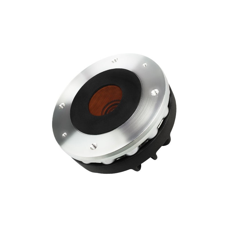 PARÁMETROS TÉCNICOSImpedancia nominal16 OhmImpedancia mínima14.4 OhmAES de potencia por encima 0.9 kHz (1)80 WAES de potencia por encima 0.65 kHz40 WSoporte máx. de potencia por encima 0.9 kHz (2)160 WSoporte máx. de potencia por encima 0.65 kHz80 WFrecuencia Mínima de Cruce (3)0.9 kHzSensibilidad (1W/1m) (4)109 dBRango de frecuencia0.7÷18 kHzDiámetro Bobina65 mm (2.56 in)Material del bobinadoAlMaterial del soporteKaptonMaterial del DiafragmaPolímero CetonaForma del DiafragmaCúpulaAltura del bobinado3.75 mm (0.15 in)Altura del campo magnético4.2 mm (0.17 in)Densidad de flujo magnético1.7 TImánCorona discos NeodimioRe11 OhmDiseño corrector de faseAnularÁngulo della Garganta (5)29° CónicoVolumen neto del aire ocupado por el HF Driver0.55 dm^3 (0.019 ft^3) ESPECIFICACIONES NOMINALESDiámetro de la garganta35.6 mm (1.4 in)Diámetro total123 mm (4.84 in)90° Diámetro de los agujeros de montaje (4xM6)102 mm (4.02 in)Profundidad63.5 mm (2.50 in)Peso neto2 Kg (4.4 lb)Caja de envío(Caja individual de cartón)185 x 170 x 122 mm(7.3 x 6.7 x 4.8 in)Peso envío2.3 Kg (5.1 lb)